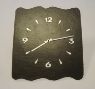 Wanduhr aus Schiefer wahlweise mit messing- oder silberfarbenen Zeigern und Ziffern.